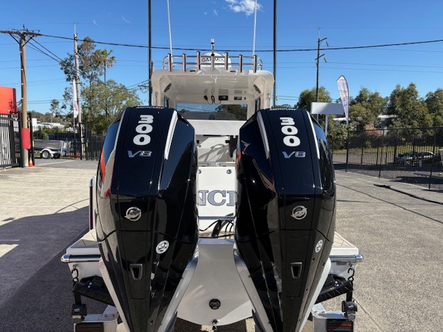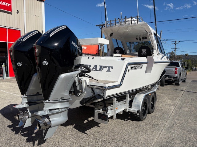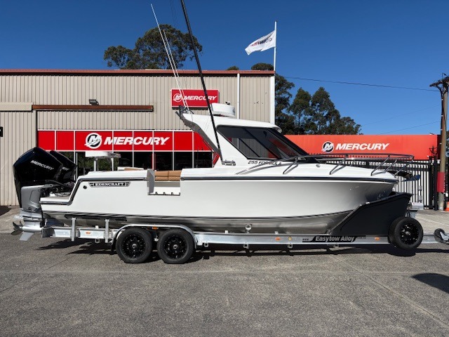 EDENCRAFT 255 HARDTOP DEMO AVAILABLE FOR PURCHASE!! Powered by twin Mercury 300hp V8 Verado outboards & capable of hitting speeds over 100km/h. Over and above all standard features, this boat also comes with dual Garmin GPS Map 8416 XSV & GSD Sonar with L & HW transducers, Garmin radar & MSC-10 satellite, Garmin auto pilot, Garmin VHF, hardtop rocket launcher, combing rack rod holders, 6x rod holders, bunk cushions, 2x footrests, transom & side combing cushions, AMS with power steering, drivers suspension seat, passenger seat box with rear seat, transom esky tubs in seat, plumbed live bait tank, deck wash, slimy tubes, game chair base & leaning post, drivers seat box with cooktop & fridge, Dometic macerator toilet, fibreglass baitboard with towel rail, pie oven, Evacor custom flooring, dash grab rail, bilge grate, trailer bra, boat catch, cabin & gunnel lighting, spot lights & underwater lights, Fusion MSRA210 stereo & Swinger rigger bases with 20ft poles.