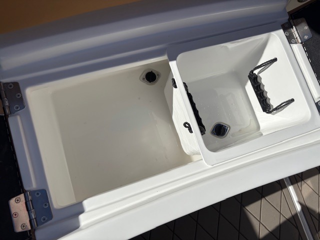 - Plumbed live bait tank