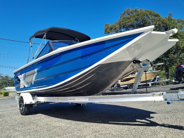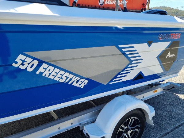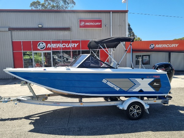 2024 Quintrex 530 Freestyler aluminium bowrider powered by a Mercury 115hp Pro XS Command Thrust on a Quintrex alloy I-Beam trailer.