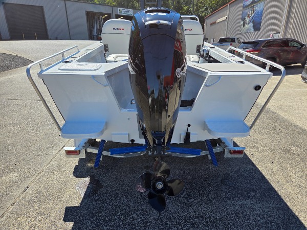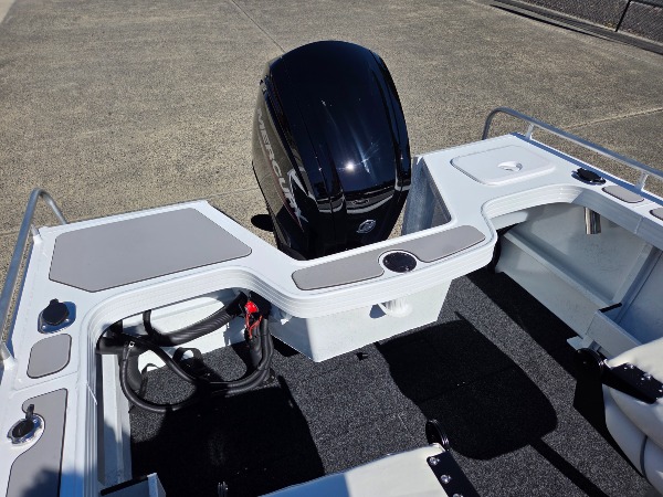 With the most powerful 75hp engine on the market this is an amazing machine. This boat comes with a two tone painted hull, 2nd rear step & rail, fisherman's pack which includes stainless rod holders, rod storage, sea tread kit& a Quintrex 22L esky, bow mount plate, welded top decks & gunnels , this is a fantastic aluminium side console.