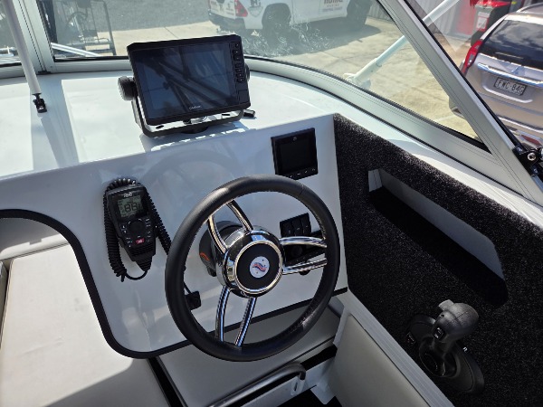 The Ocean Spirit Pro in Stealth Grey has everything you need for the perfect all rounder. Ski pole/Baitboard combo, burley bucket, upgraded seats, vhf, stereo & heaps more. This boat also has a transom door, live bait tank + front & side clears & a Garmin UHD275SV.