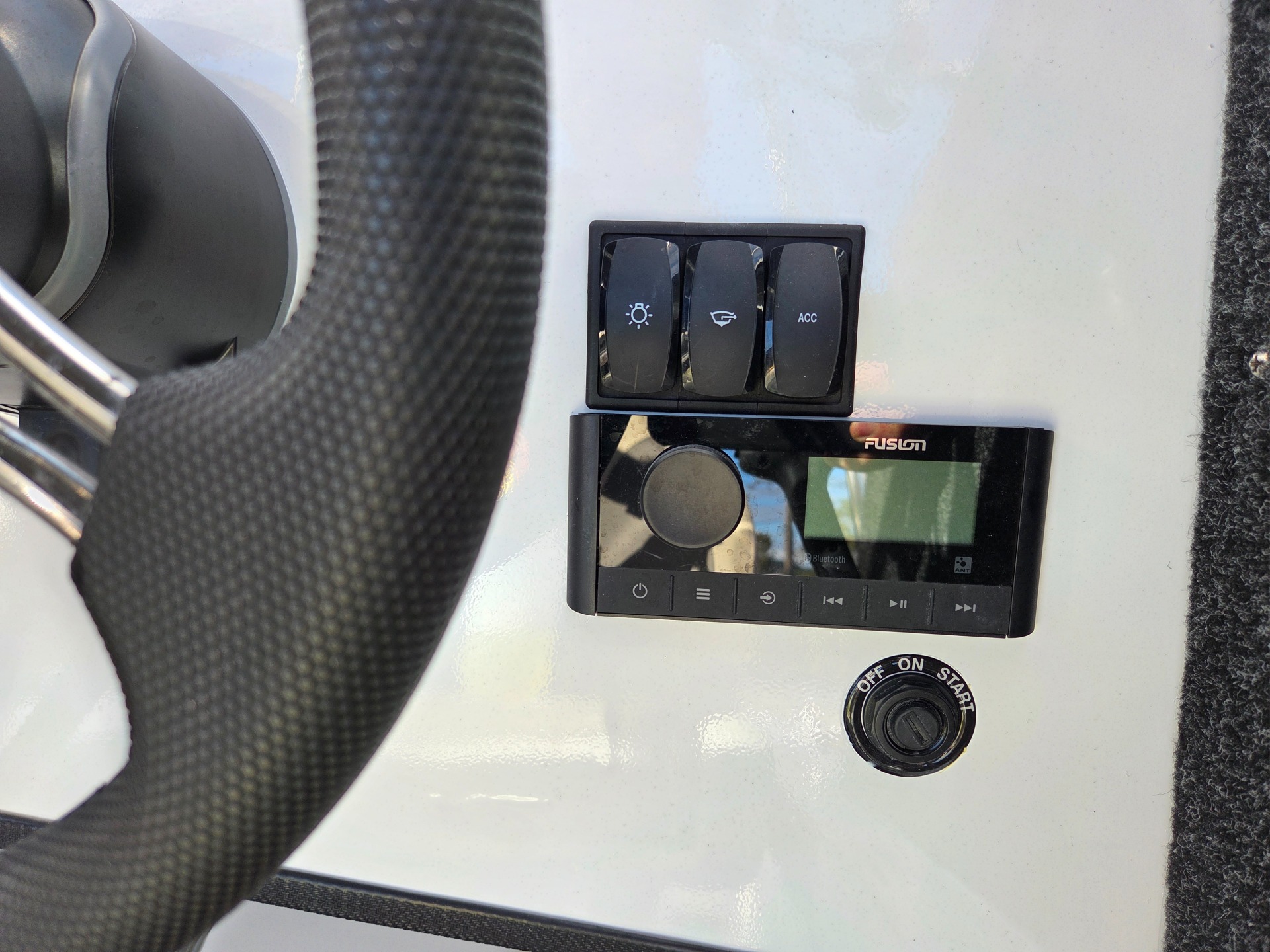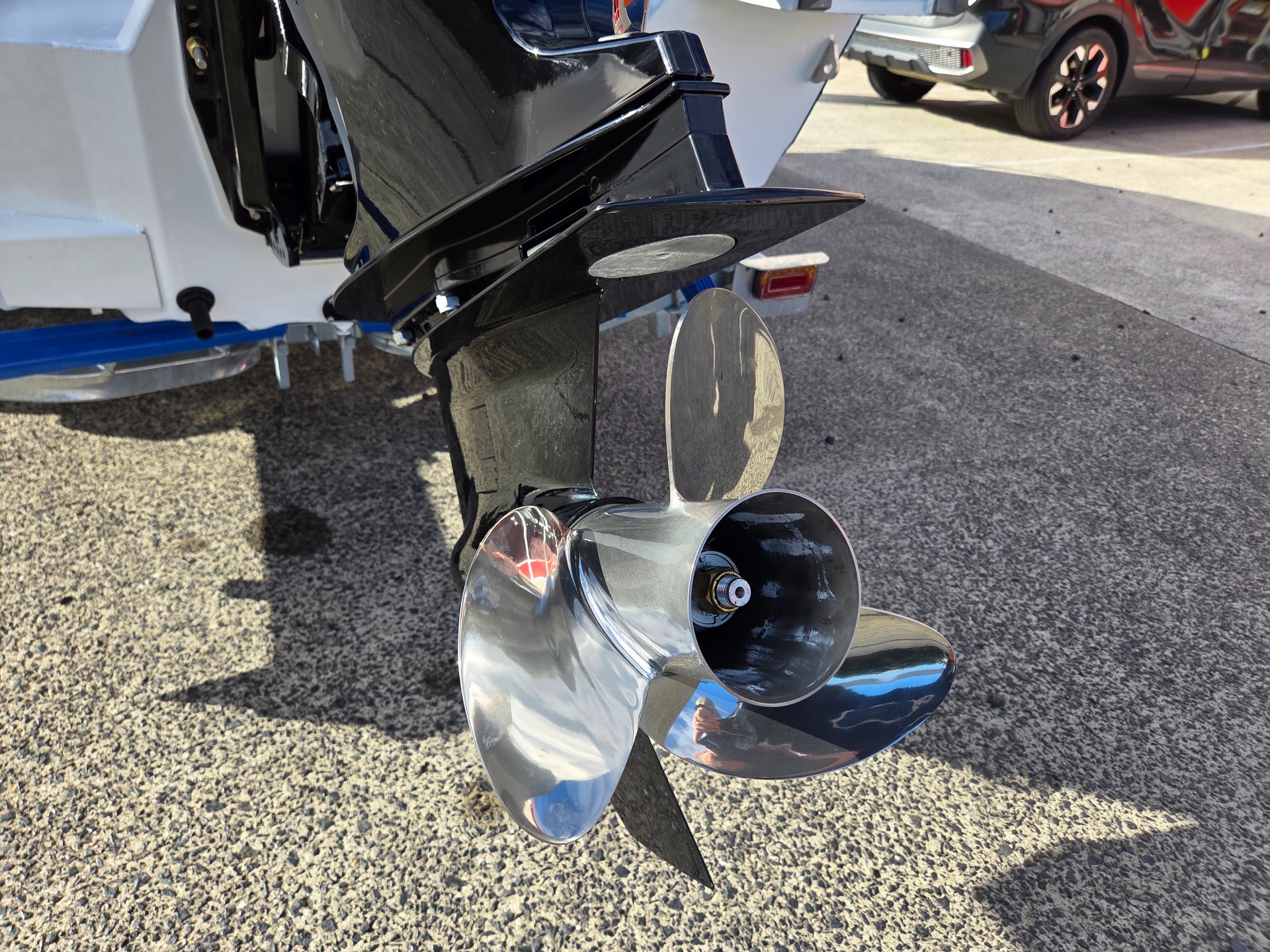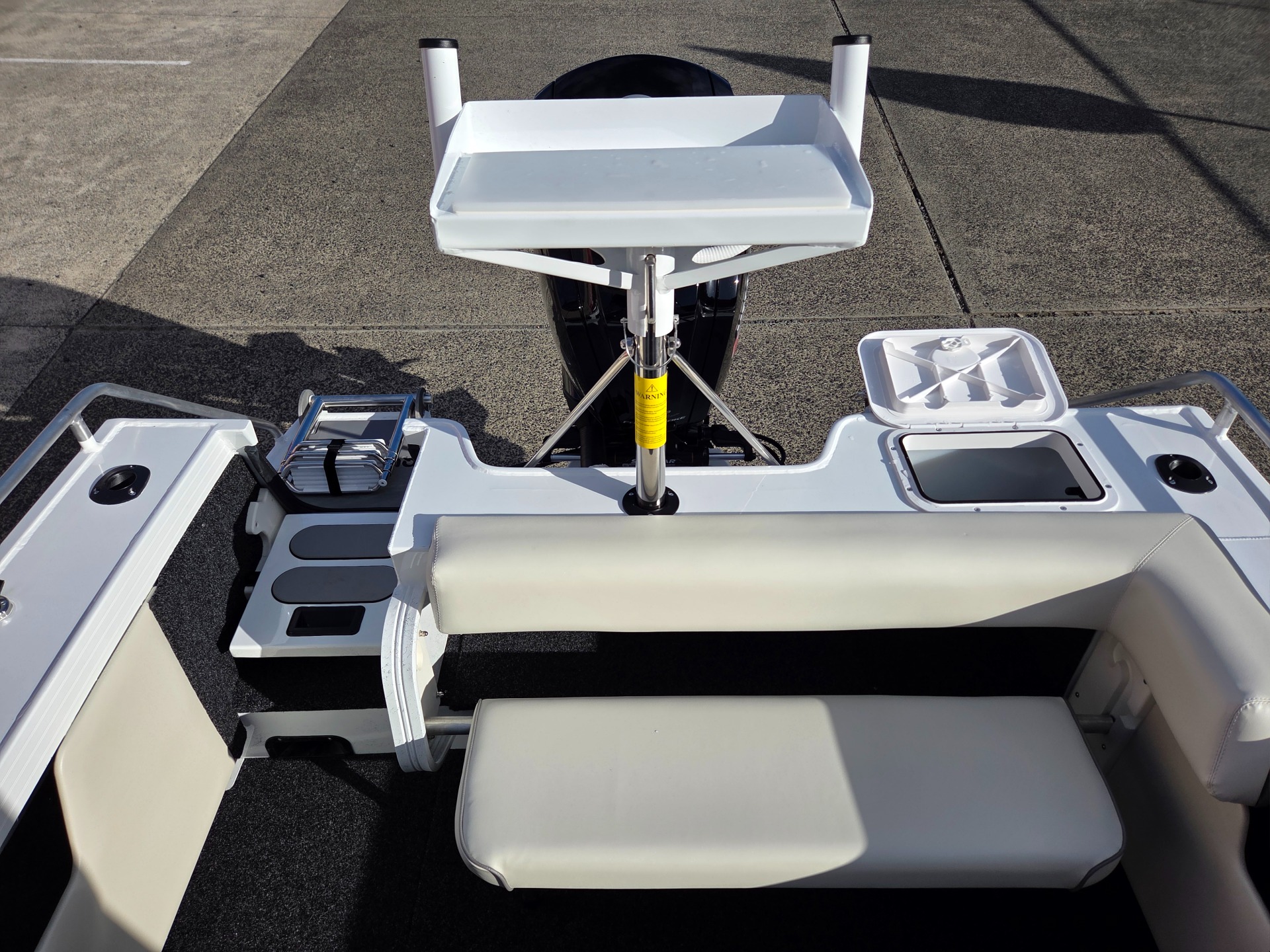 The Ocean Spirit Pro in Deep Ocean Blue has everything you need for the perfect all rounder. Ski pole/Baitboard combo, burley bucket, upgraded seats, vhf, stereo & heaps more. This boat also has a transom door, live bait tank + front & side clears.