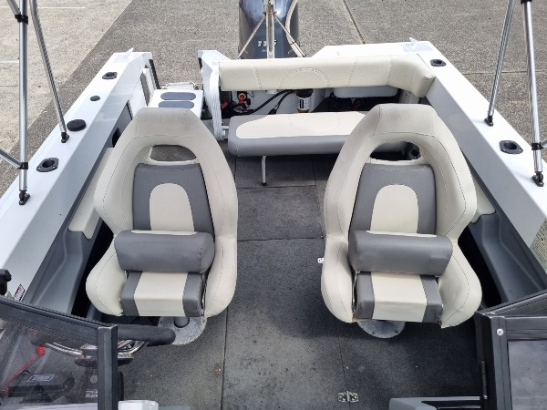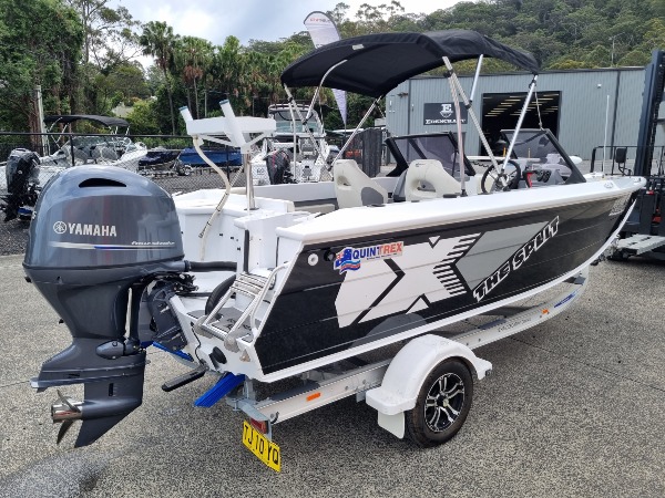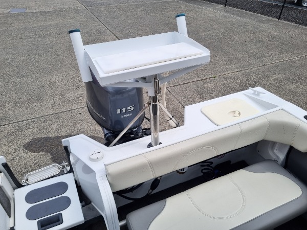JUST ARRIVED 2021 Quintrex 530 Freestyler powered by a Yamaha 115hp 4-stroke & less than 28 hours on the clock!! This boat has a transom door, ski pole/baitboard combo, minn kota with lithium battery, Lowrance Elite 7 fishfinder, fusion stereo, VHF, live bait tank, deck wash hydraulic steering, stainless steel prop plus a spare wheel & bracket. It is set up and ready to go!!