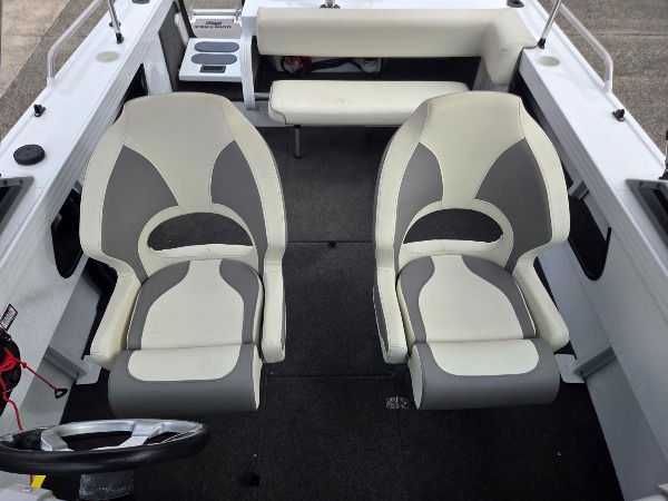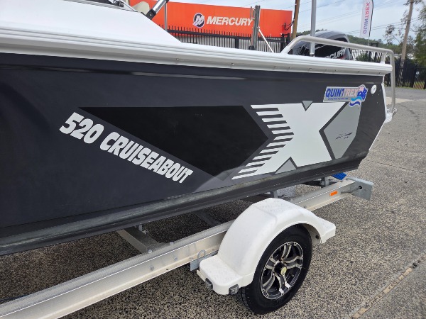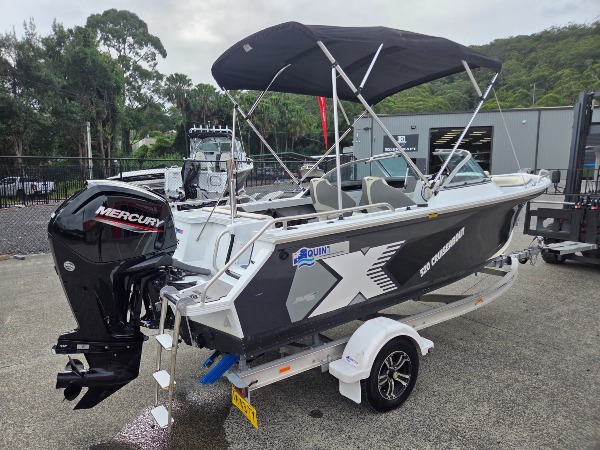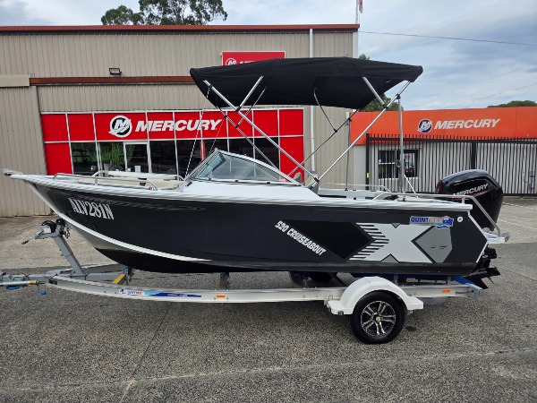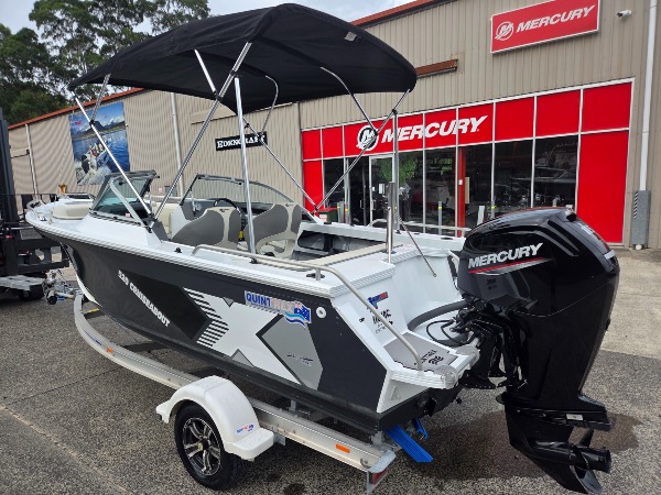 In stock now — this 2022 Quintrex 520 Cruiseabout is ready for the water and powered by a reliable Mercury 115HP 4-stroke Command Thrust, with less than 100 hours on the clock.